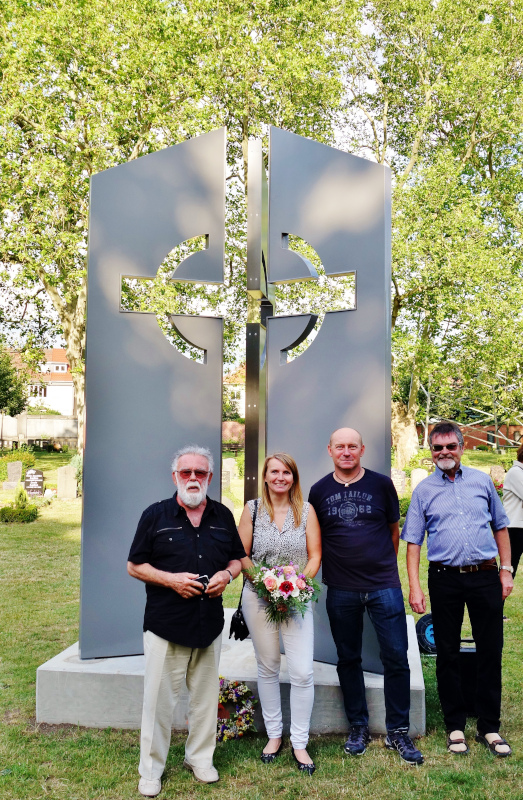Es hat dann noch einmal gedauert, bis in diesem Gremium alle Weichen dafür gestellt waren und an die Ausführung und Aufstellung gedacht werden konnte. Man kann es wohl eine Fügung nennen, dass dieses gewichtige Denkmal endlich 2020, im Jahr der Corona-Pandemie, in für alle schwierigen, unsicheren Zeiten, errichtet wurde. Soll es doch ein Zeichen unseres Glaubens an Kreuz und Auferstehung gerade auf einem Friedhof sein. Ein solches starkes christliches Symbol fehlte dort bisher.