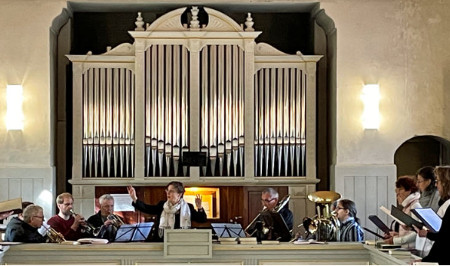 Zur Vorbereitung des Einbaus der neuen Orgelpfeifen war die Reinigung der noch verbliebenen Holzpfeifen erforderlich. Unter Anleitung der Orgelbaufirma „Mitteldeutscher Orgelbau A. Voigt“ legten einige Gemeindeglieder Hand an und reinigten mit Handfeger, Pressluft und viel Engagement die dafür ausgebauten Orgelpfeifen. Vielen Dank den fleißigen Helfern, die damit auch dazu beigetragen haben, dass die Orgel nach dem Wiederaufbau pünktlich am 31. Oktober im Gottesdienst erklingen konnte. Die Prüfung und Abnahme der Orgel erfolgte am 18. 11. 2025. Dabei wurde das Instrument und die Arbeit der Orgelbaufirma Voigt durchweg positiv bewertet.
